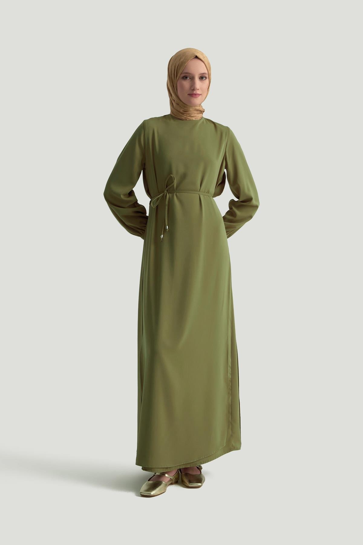 ARMİNE TREND Kolları Lastikli Astarlı Elbise Haki 25YT927