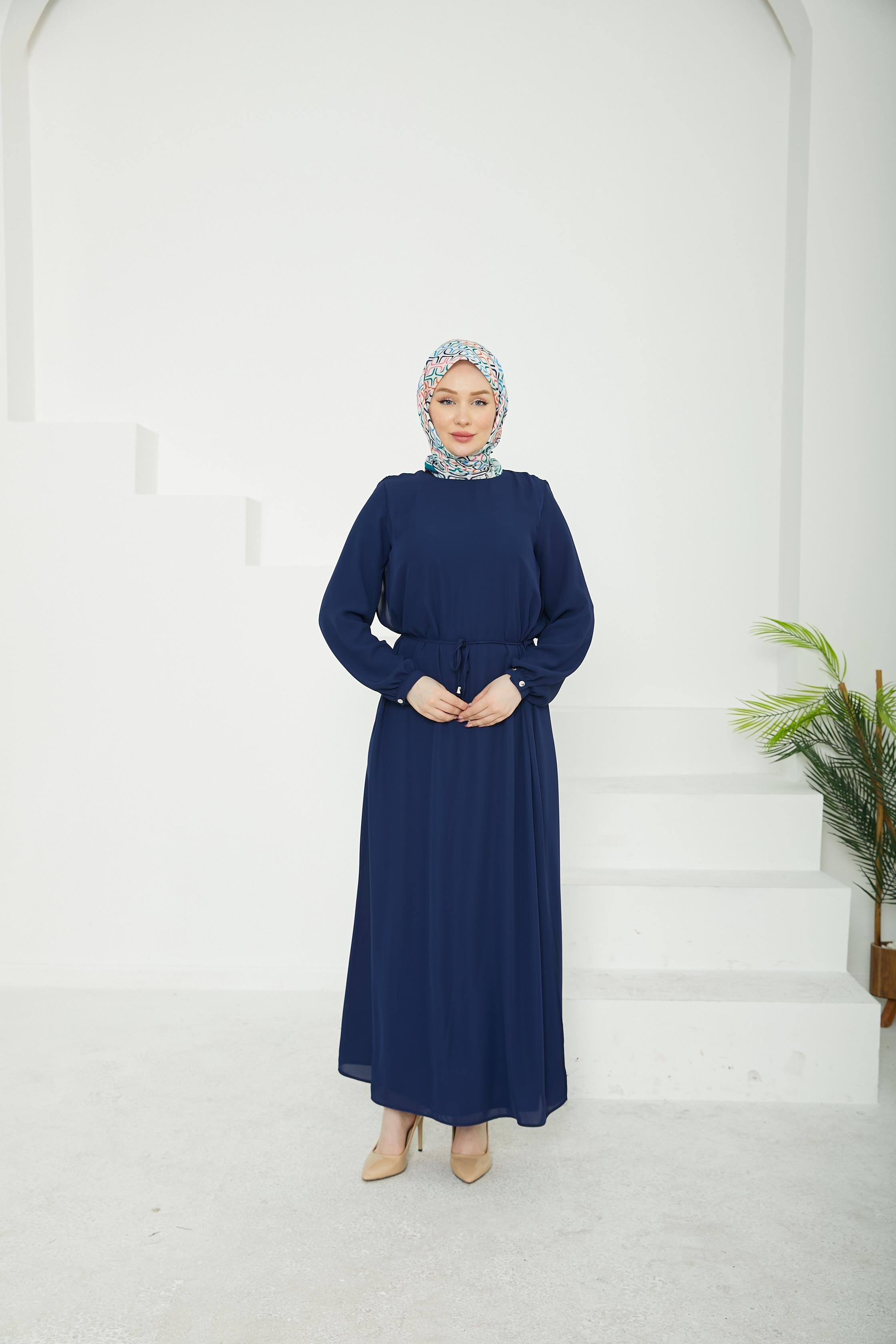ARMİNE TREND Kolları Lastikli Astarlı Elbise-Lacivert 25YT927