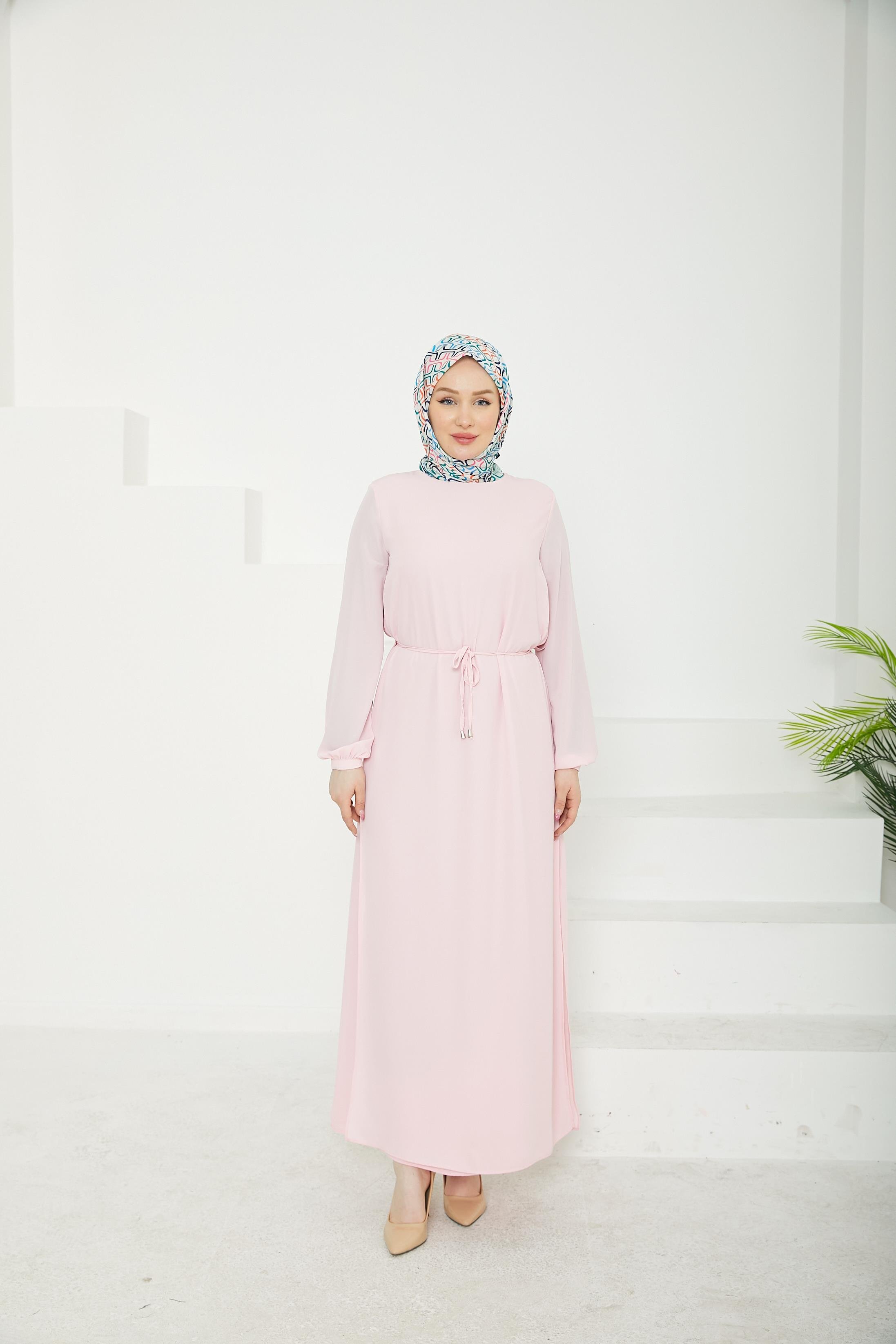 ARMİNE TREND Kolları Lastikli Astarlı Elbise Pink 25YT927
