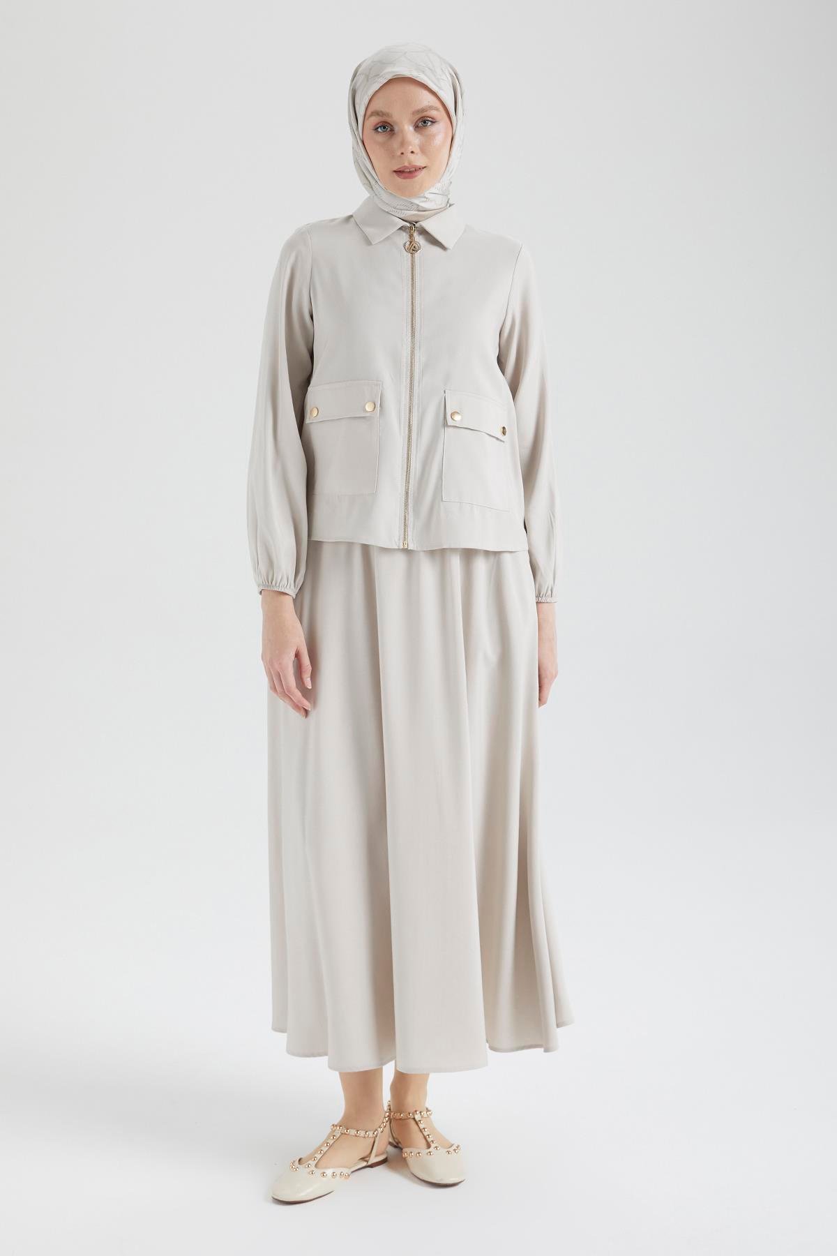 ARMİNE TREND Kolları Lastikli Önden Cepli Etek Beli Lastikli İkili Takım-Taş 25YT622 (K25YA6220001-1041)
