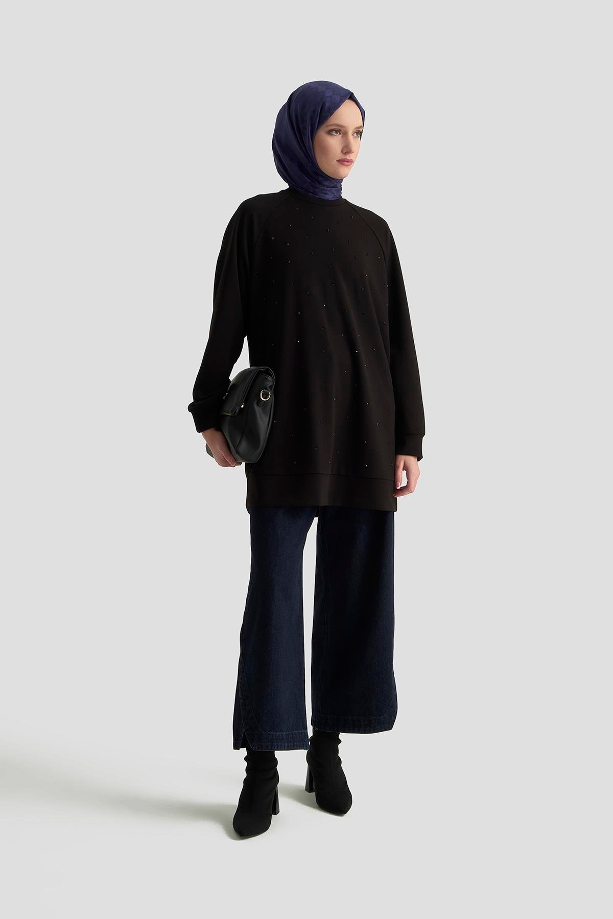 ARMİNE TREND Önü Taş İşlemeli Tunik Siyah 25KT449