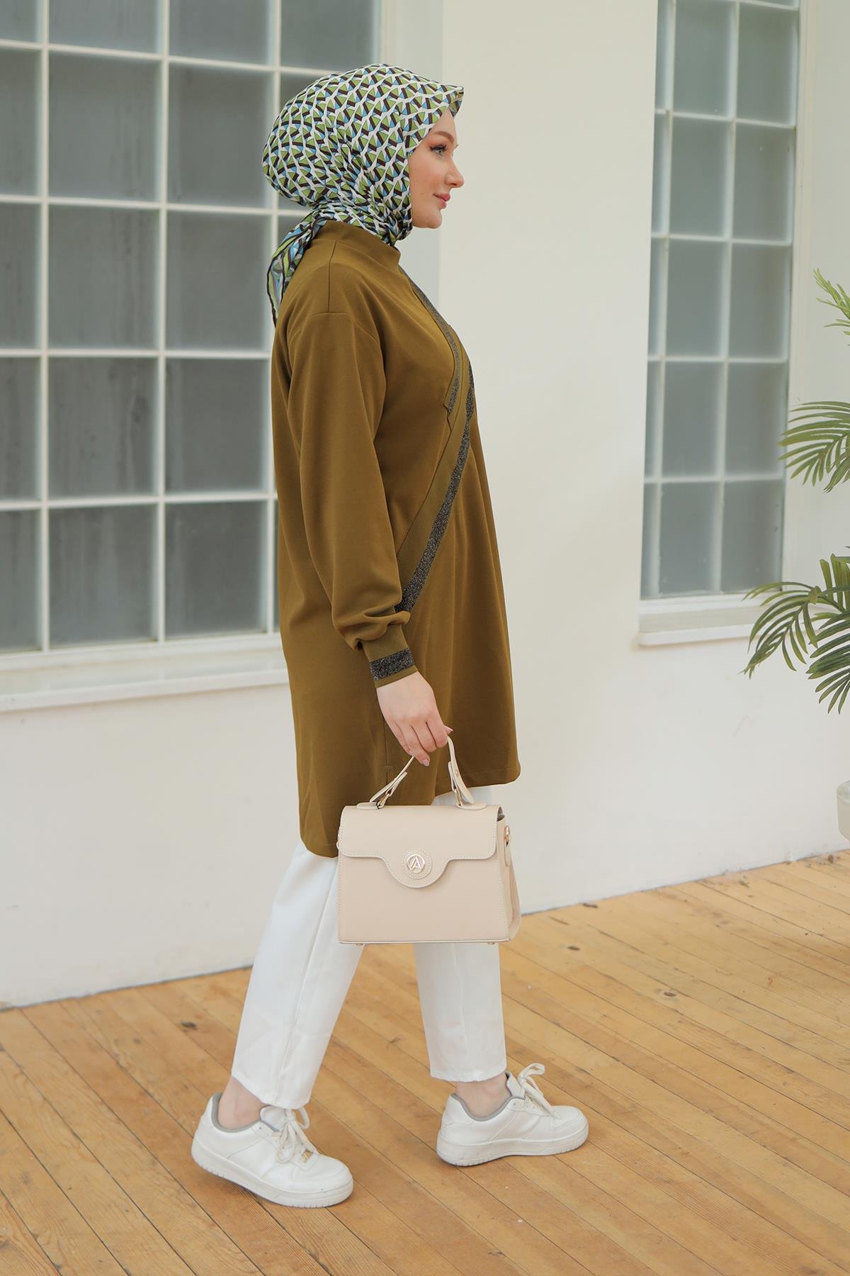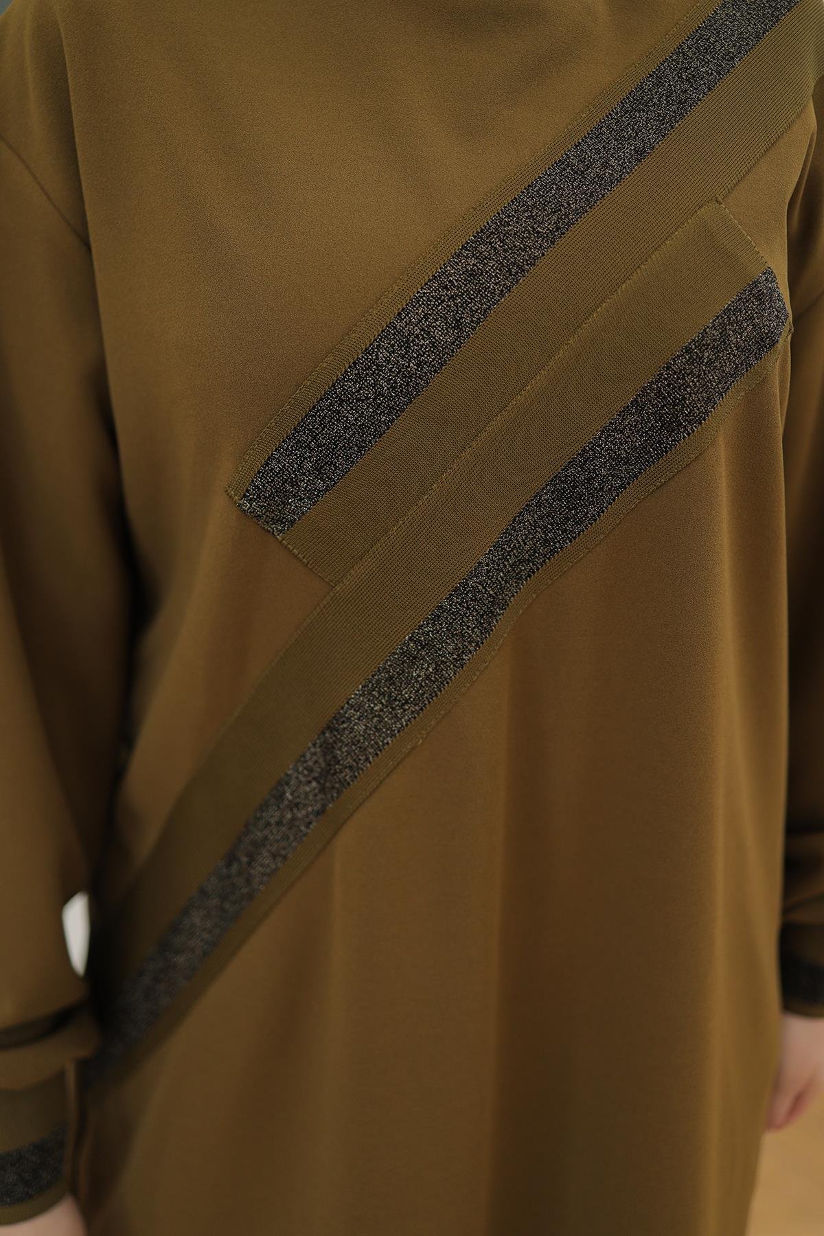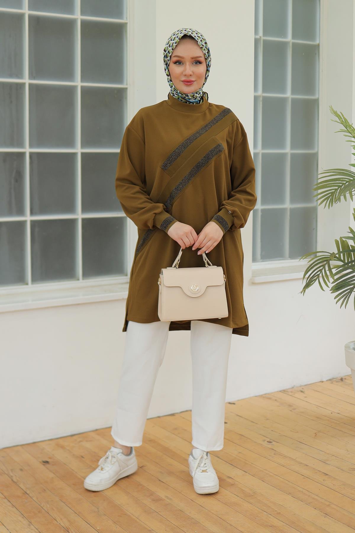 "Şıklığı ve konforu bir arada sunan ARMİNE TREND Kolları Ribanalı Sim Detaylı Tunik, her ortamda dikkat çekmenizi sağlayacak mükemmel bir seçim bu zarif parça, dolabınızda kesinlikle yer almalı!"
